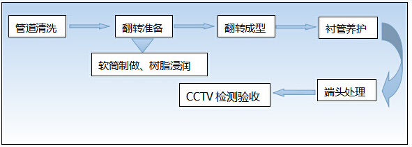 原理:通過特殊加壓設(shè)備將浸漬了特殊粘合劑的內(nèi)襯軟管翻入待修復(fù)管道,翻轉(zhuǎn)時(shí)浸漬有粘合劑的內(nèi)層翻轉(zhuǎn)到外面與原管道內(nèi)壁緊貼,經(jīng)過固化最終形成具有防腐防滲功能的內(nèi)襯層,最終達(dá)到修復(fù)管道的目的。